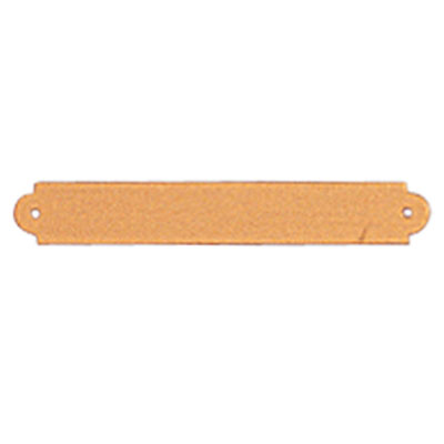 2-1/2 inch x 3/8 inch satin brass plate with notched rounded corners, 2 holes.