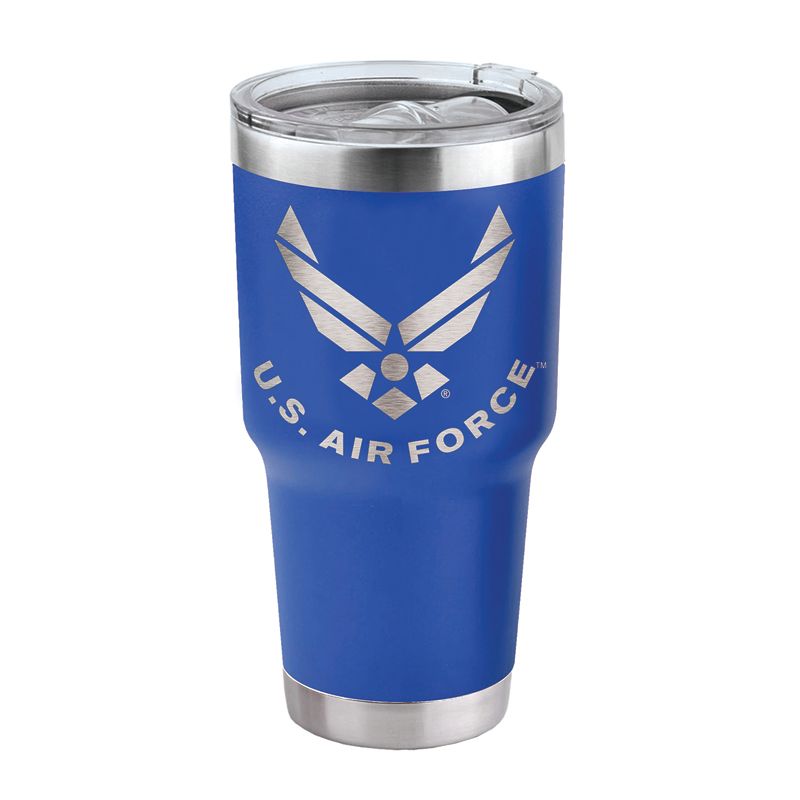30 Oz Double Walled Stainless Steel Large Blue Tumbler Laser Engraved With U.S. Air Force Logo