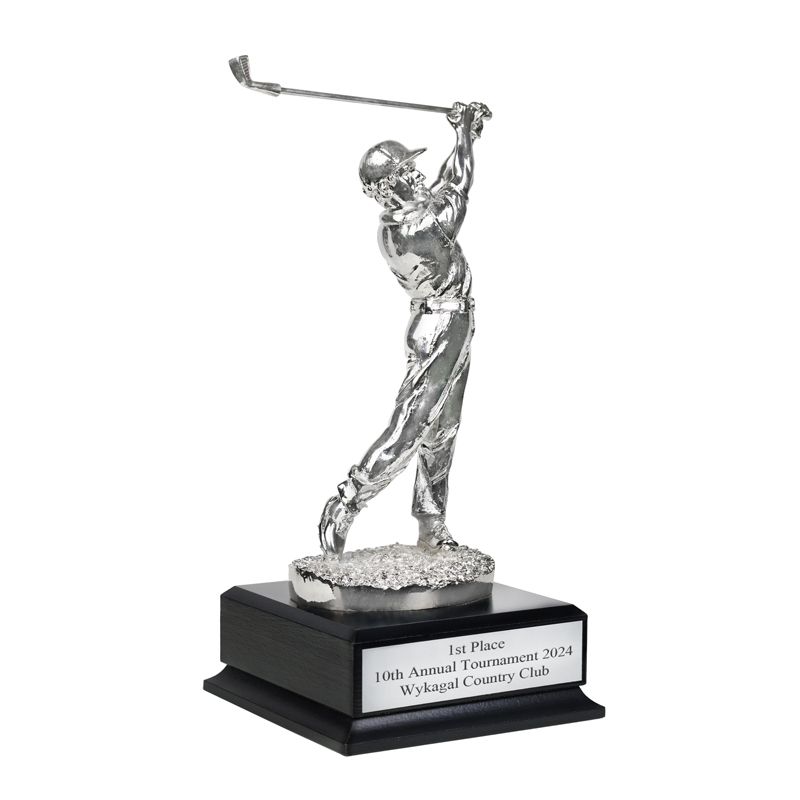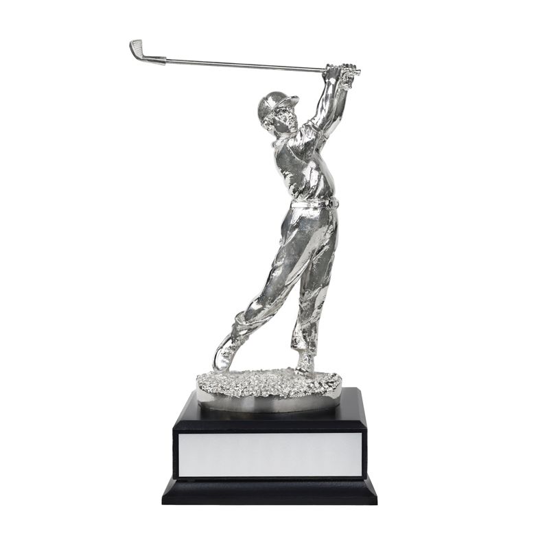 11 Inch Electroplated Bright Silver Figure Golf Trophy