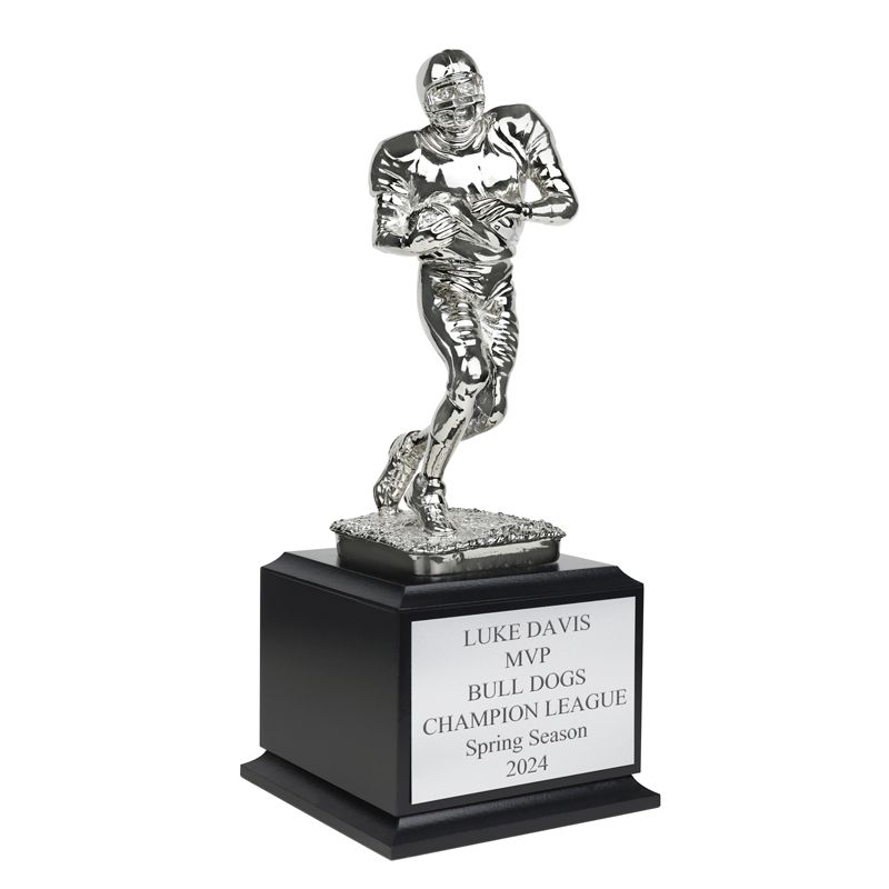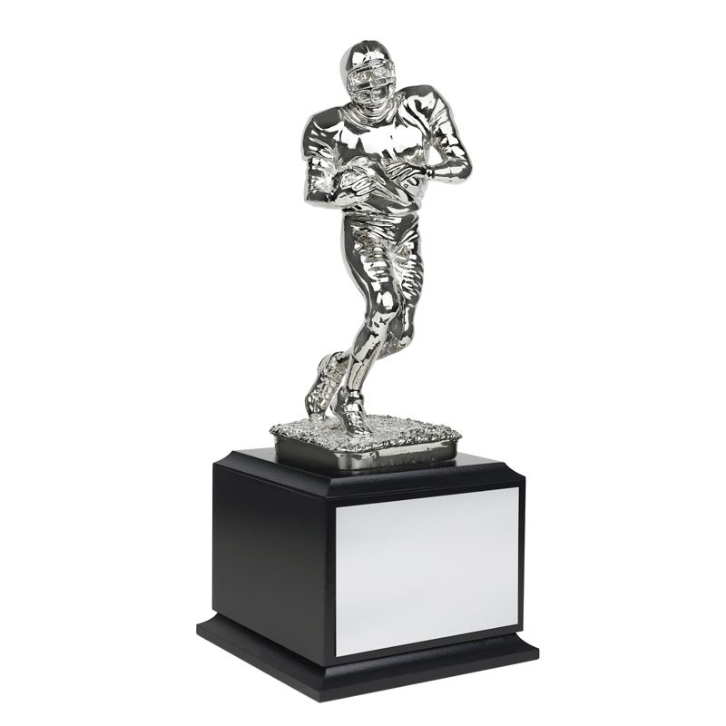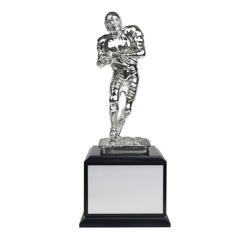 13 Inch Electroplated Bright Silver Football Figure Trophy